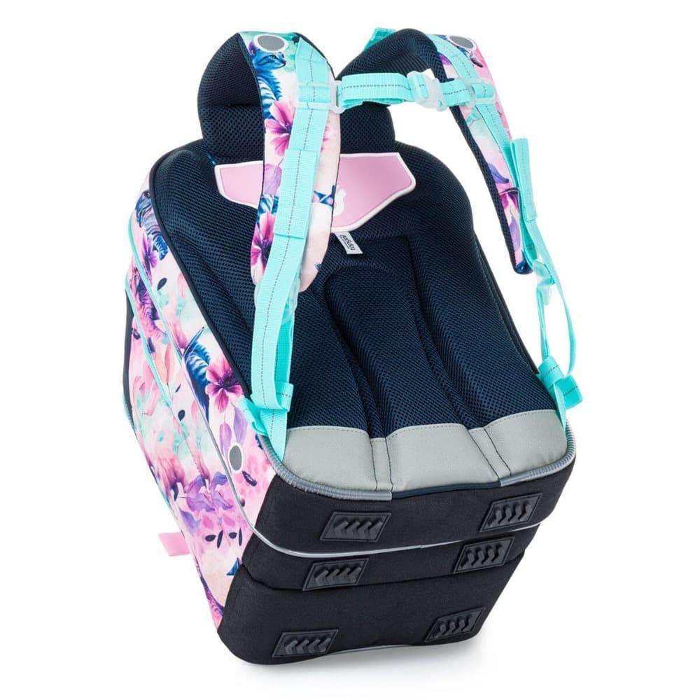 Batoh má ergonomicky tvarovaná záda a měkce polstrované ramenní popruhy, které se snadno přizpůsobí postavě dítěte. Díky výškově nastavitelné hrudní přezce batoh dobře drží na zádech a neklouže ani při pohybu. Vnitřní prostor je rozdělený do více komor pro snadnou organizaci školních pomůcek. Do zadní části batohu doporučujeme uložit těžší učebnice nebo desky na sešity.