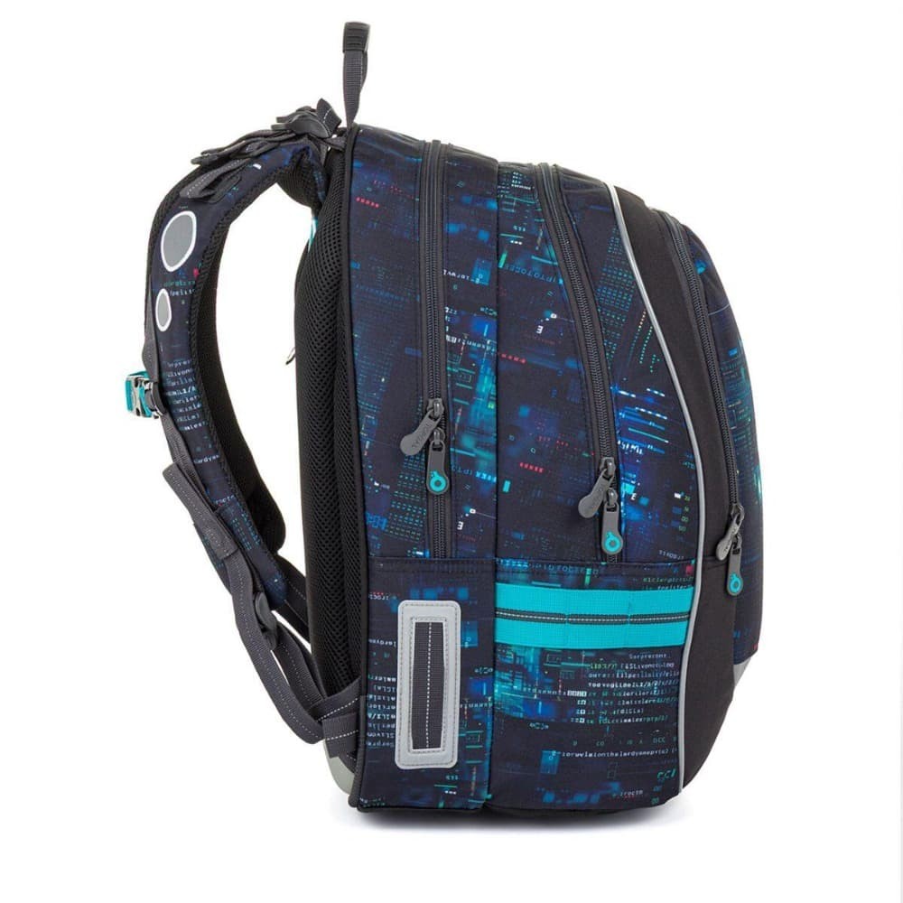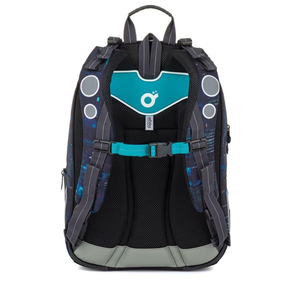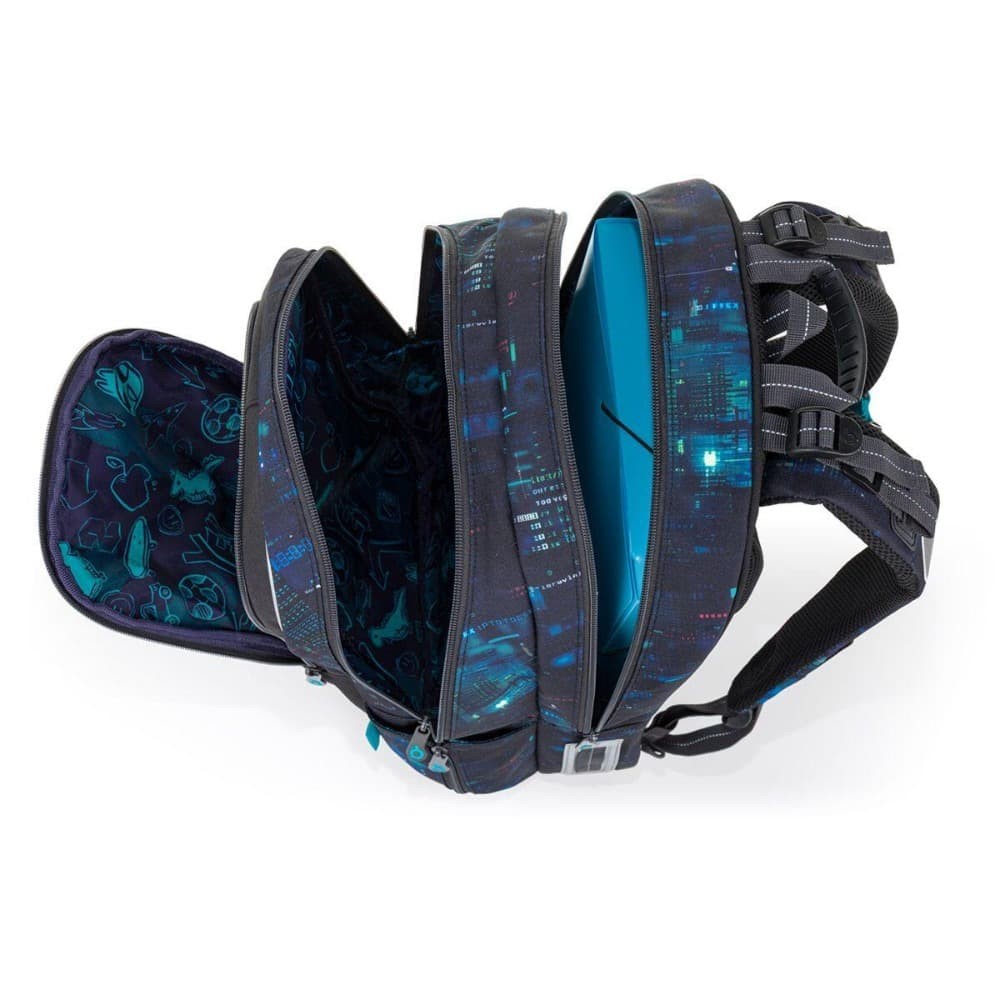 Školní batoh CODA je vhodný pro školáky od 125 cm a ideální pro období od 2. do 5. třídy. Digitální motiv inspirovaný technologiemi, kódy a světem počítačů dodává batohu moderní vzhled, který zaujme na první pohled. Batoh má ergonomicky tvarovaná záda a měkce polstrované ramenní popruhy, které lze snadno nastavit podle postavy dítěte. Díky výškově nastavitelné hrudní přezce batoh dobře drží na zádech a pohodlně se nosí i při delším nošení.
