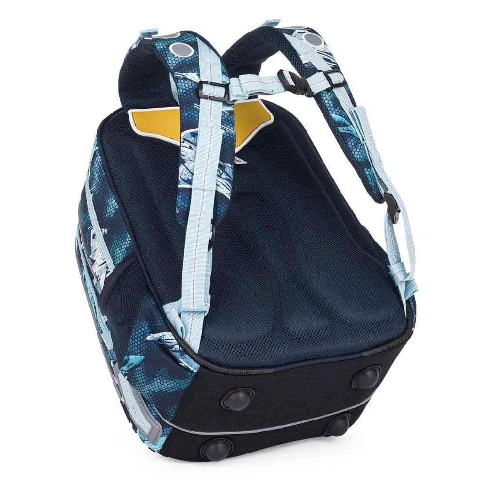 Modrý batoh se stíhacími letouny Raptor je určen pro malé školáky na prvním stupni ZŠ. Model ELLY neváží ani kilogram, proto je ideální pro kluky od první až čtvrté třídy ZŠ s výškou od 115 cm. Potisk stíhaček doplní gumová nášivka.