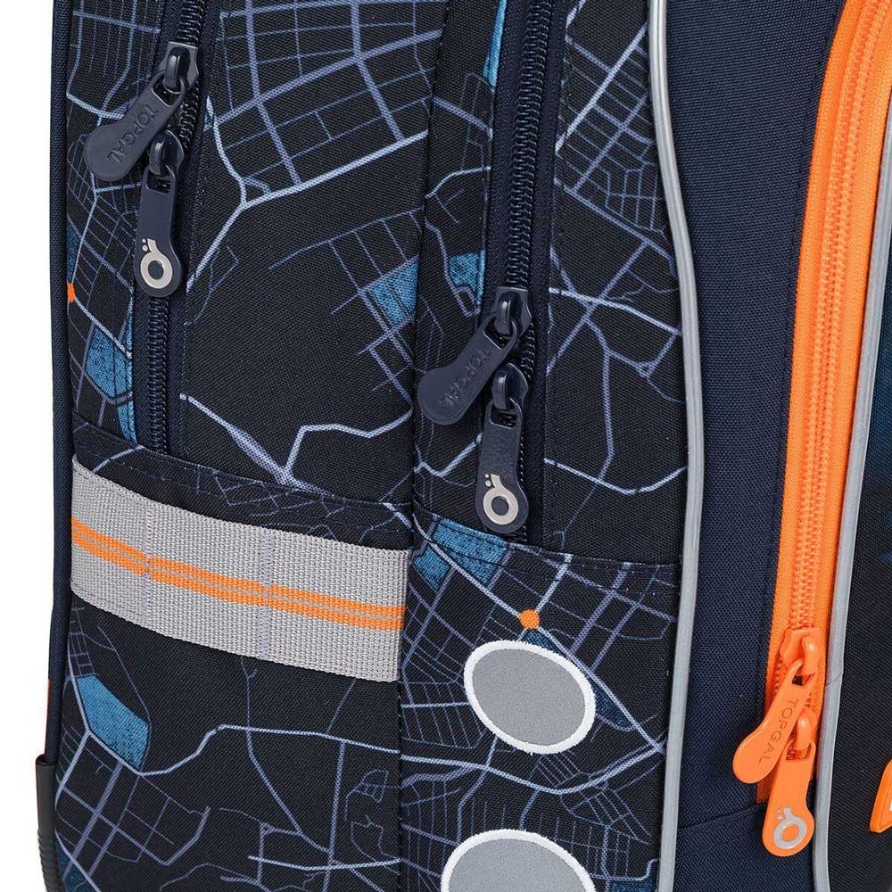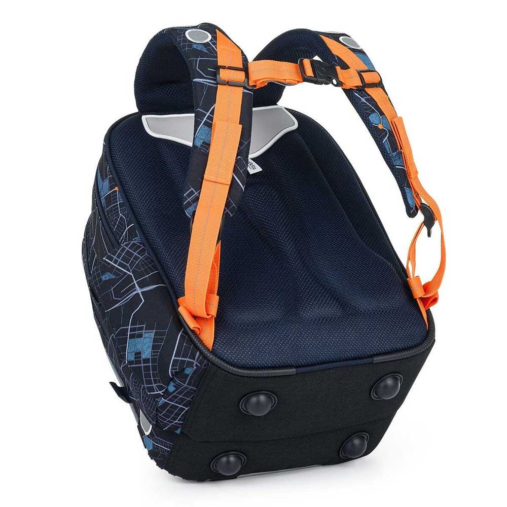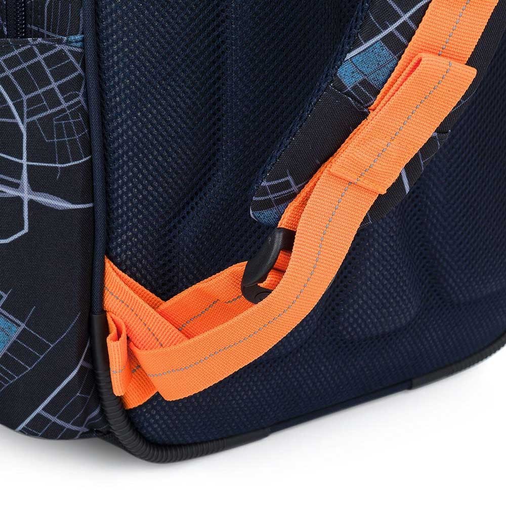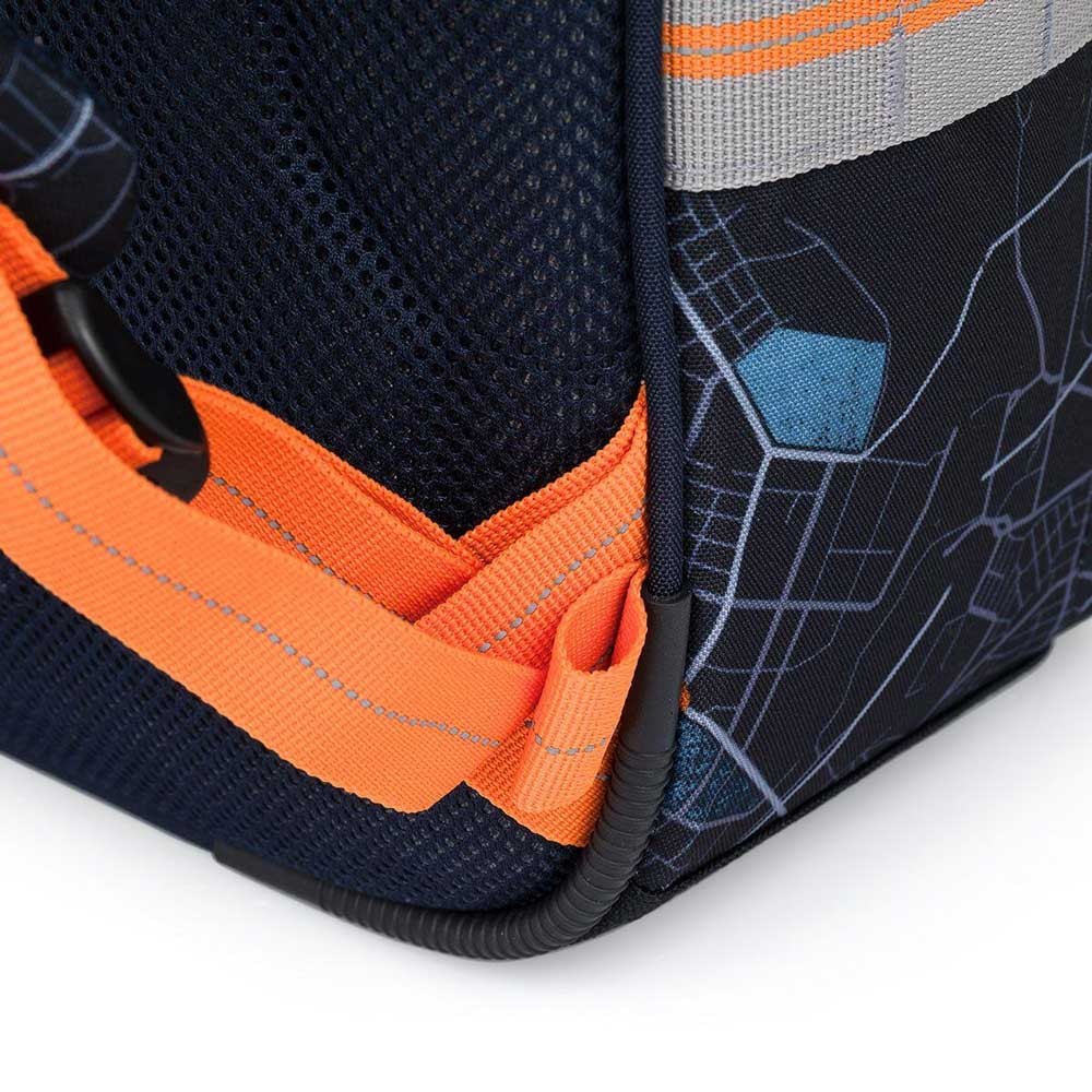 Model ENDY je dvoukomorový batoh, který neváží ani kilogram. Doporučujeme jej klukům s výškou od 110 cm, do první až třetí třídy ZŠ. Batoh má dvě objemné hlavní komory. Do nejširší zadní komory dejte nejtěžší učebnice nebo desky na sešity. Přední komora je o něco užší, je v ní ukrytá malá síťová kapsa na zip a jmenovka. Přední hluboká kapsa pojme penál nebo krabičku na svačinu. Do bočních kapes se vejdou lahve na pití o objemu 0,5 litru.