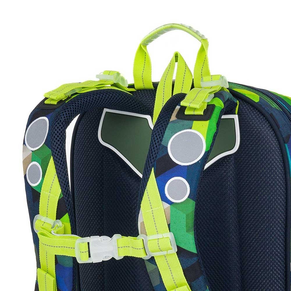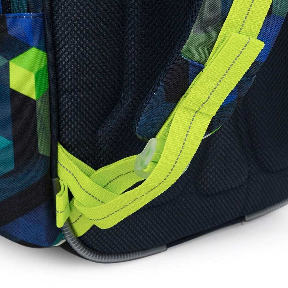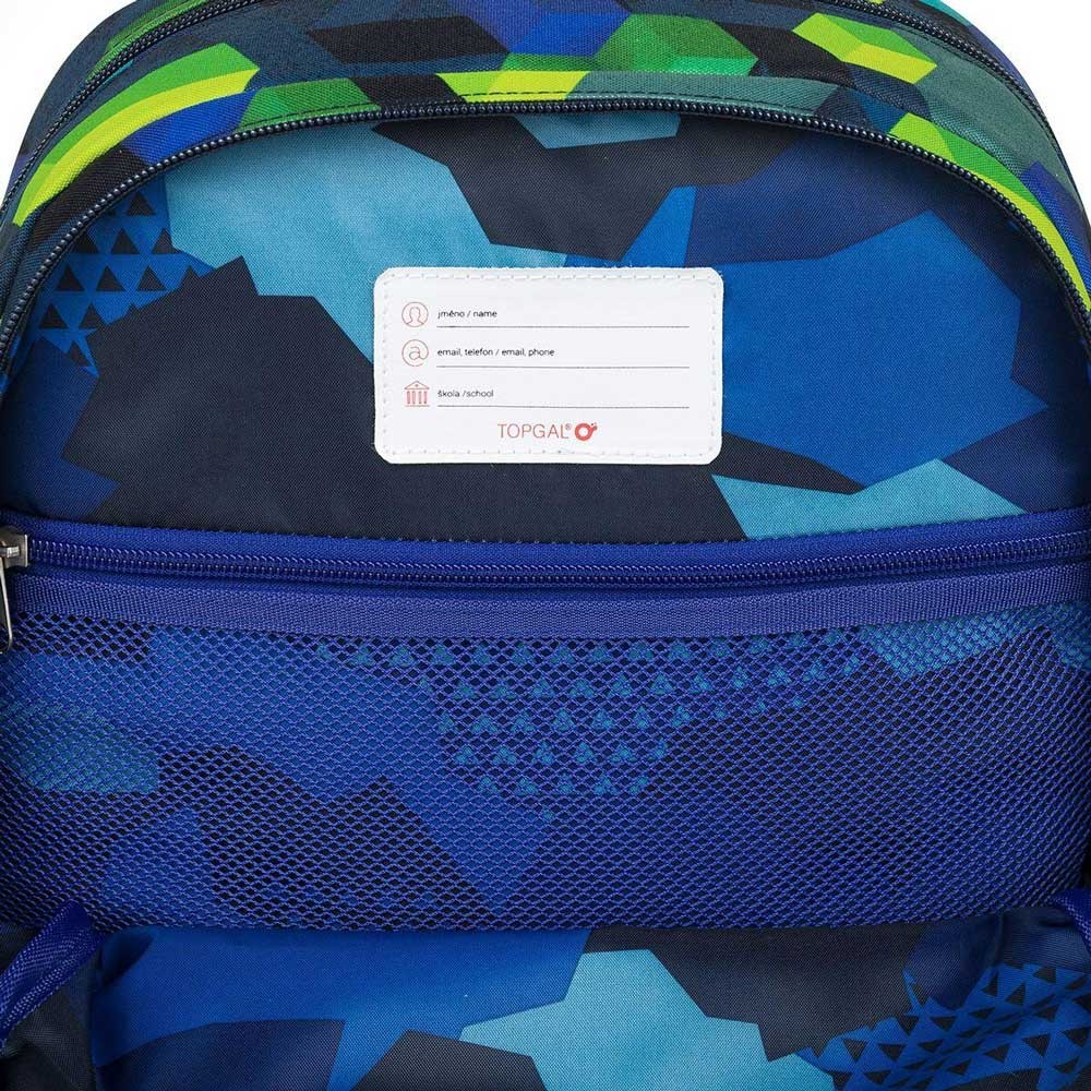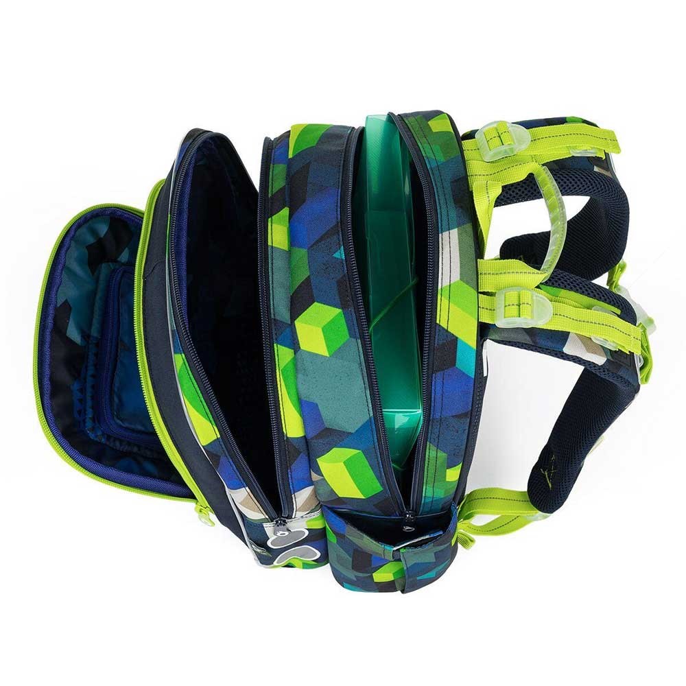 Batoh má dvě objemné hlavní komory. Do nejširší zadní komory doporučujeme dát nejtěžší učebnice nebo desky na sešity. Přední komora je o něco užší, a je v ní umístěna malá síťová kapsa na zip a jmenovka.
