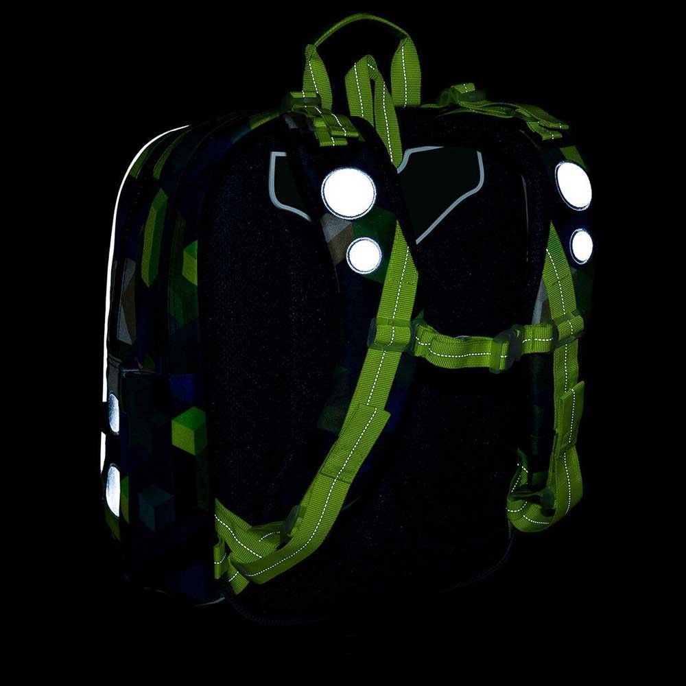 - reflexní prvky: na čele a bocích batohu, na ramenních popruzích