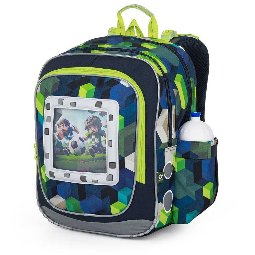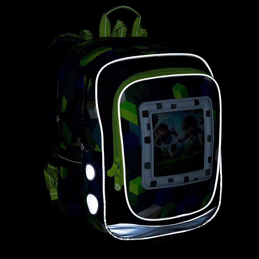 Model ENDY neváží ani kilogram, proto je ideální pro kluky s výškou od 110 cm do první až třetí třídy ZŠ. Součástí batohu jsou čtyři obrázky se zvířecím a sportovním motivem v Minecraft stylu.