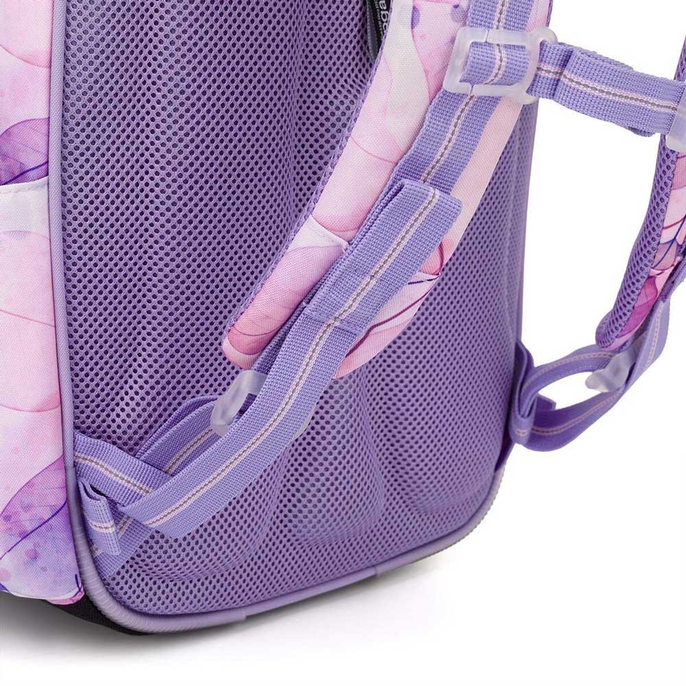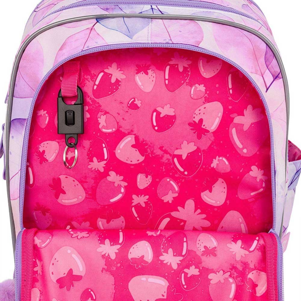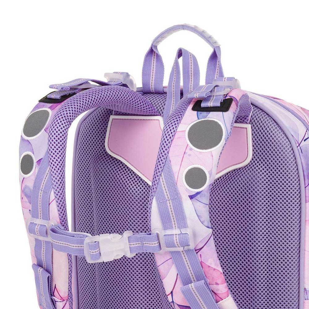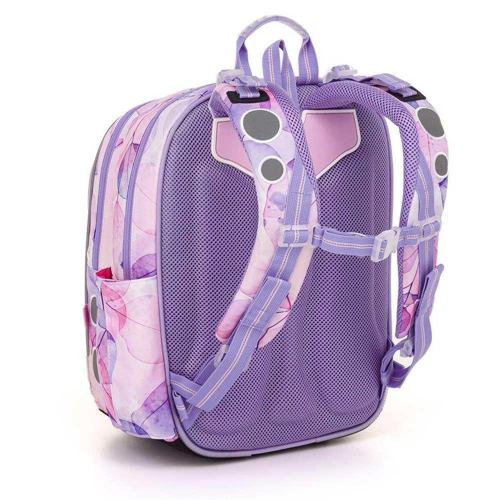 Lehoučký dvoukomorový školní batoh ENDY v něžných odstínech fialové s roztomilým koníkem a huňatým srdíčkem perfektně padne drobným školákům od první do třetí třídy ZŠ. Skvělý parťák pro malé školačky od 110 cm neváží ani kilogram.