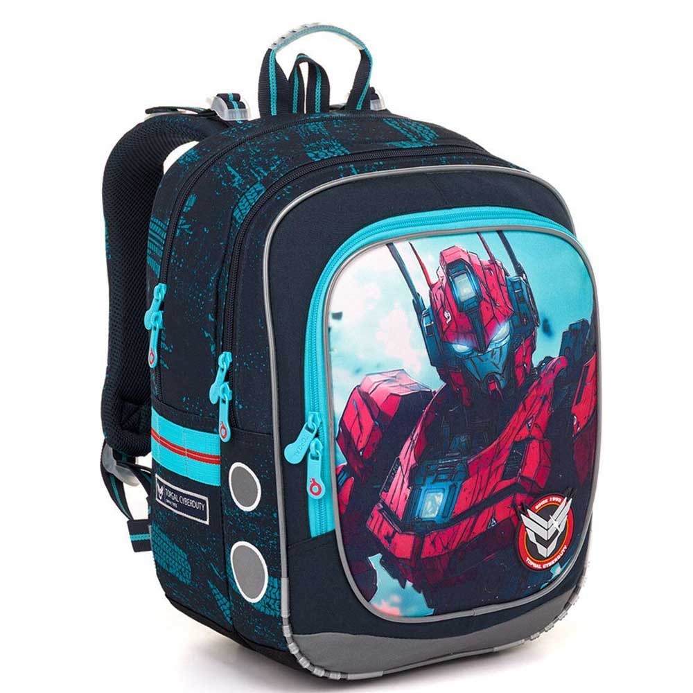 Ultralehký dvoukomorový školní batoh ENDY s futuristickým robotem a reflexními prvky patří k nejoblíbenějším batohům pro první stupeň ZŠ. Díky váze pod jeden kilogram skvěle padne drobným školákům od 110 cm výšky. Červený robot na tmavém podkladu si okamžitě získá všechny malé fanoušky akčních hrdinů a technologií. Ještě navíc jeho oči svítí ve tmě!