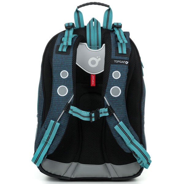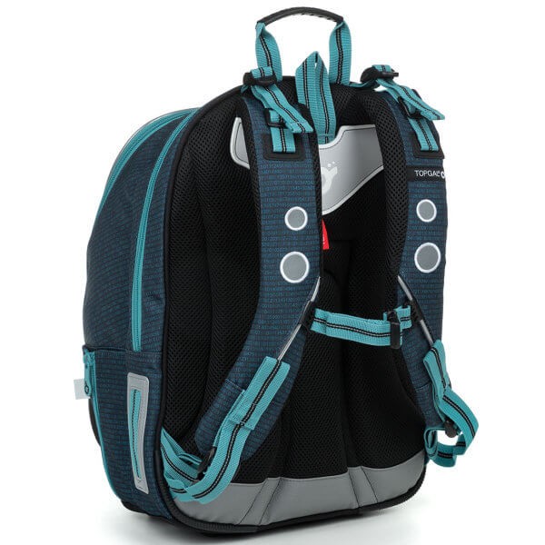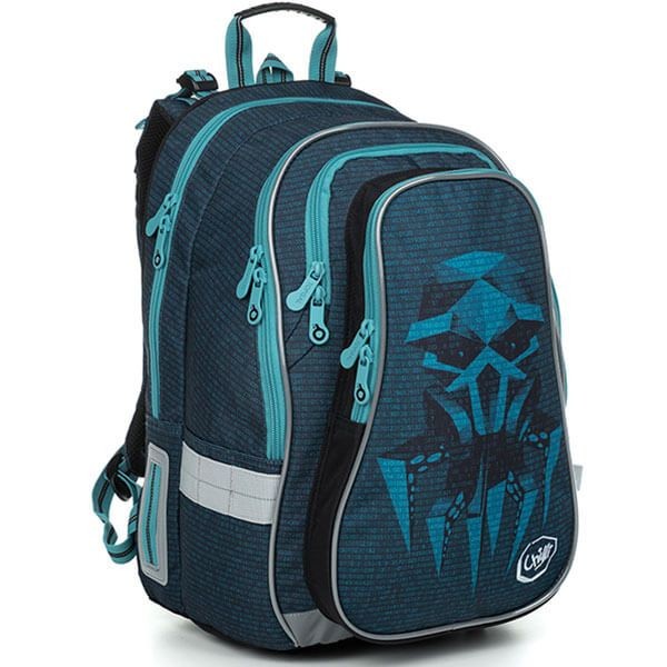 Tři hluboké komory a velká přední kapsa budou objemem dostačující minimálně do 5. třídy základní školy. Dno batohu je opatřeno plastovými nožičkami. Anatomicky tvarovaná polstrovaná zádová část s lehkou hliníkovou výztuhou poskytuje zádům školáka oporu a pohodlí při každodenním nošení a dovoluje dostatečnou cirkulaci vzduchu mezi zády a polštáři.