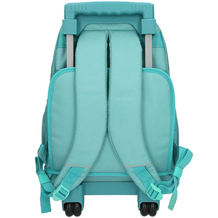 Batoh má velký objem a pohodlně pojme desky na sešity A4. Batoh je primárně určený k přesunu na kolečkách, ale má i klasické ramenní popruhy, díky kterým je možné dát batoh na záda. Má výsuvnou rukojeť pro lepší manipulaci. Nechybí ani prostorná přední kapsa s jednoduchým organizérem a všetně kroužku na klíče. Vše uzavíratelné na zip. Dvě postranní kapsy na láhev s pitím.