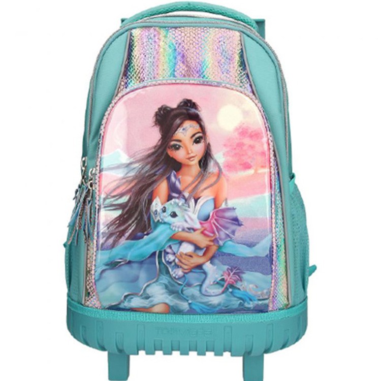 Dvoukomorový dívčí batoh na kolečkách v tyrkysové barvě s krásným obrázkem Liv s dráčkem, vhodný jako druhý batoh (ideálně pro 2.- 4. třídu ZŠ) nebo batoh pro vysoké prvňáčky.