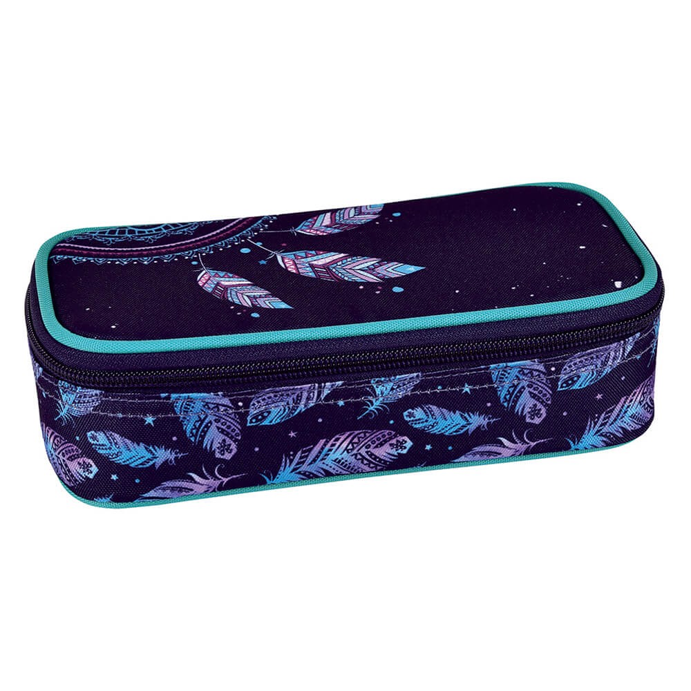 Školní pouzdro s klopou, nevybavené. Obsahuje 10 gumových poutek pro uložení psacích potřeb a 3 kapsičky, jednu zipovou. Nabízí dostatek dalšího místa pro volné uložení dalších školních pomůcek.