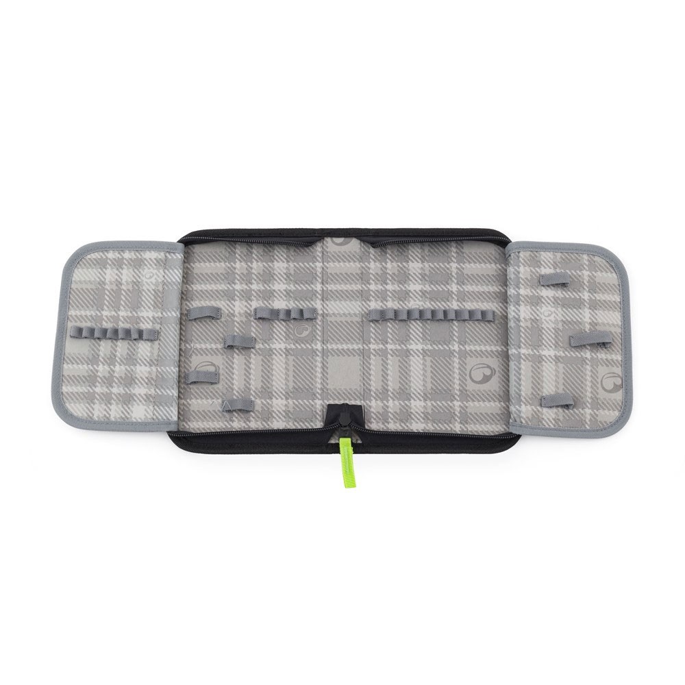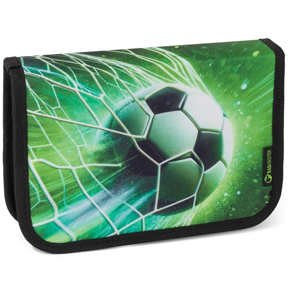 Stylový penál do školy fotbalový míč je vhodný pro malé školáky na první stupeň. Penál se uzavírá kvalitním zipem. Je lehké a v batohu nezabírá moc místa. Na dvou otevíravých chlopních je 35 pružných gumových úchytů na pastelky, pera, fixy, gumu, nůžky, kružítko a další pomůcky. Na horní straně chlopně je průhledná kapsa na rozvrh a výukové kartičky.