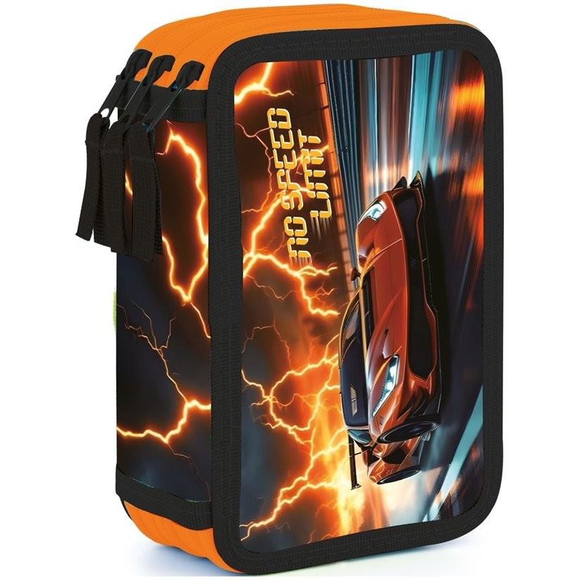 Kvalitní chlapecký třípatrový penál Auto 2 bez náplně. Penál do školy obsahuje 41 gumových poutek pro uložení všech psacích potřeba a drobností potřebných k výuce. Penál má pevný zip s velkými taháčky pro snadnou manipulaci. Jedno patro je opatřeno průhlednou přihrádkou pro týdenní rozvrh.