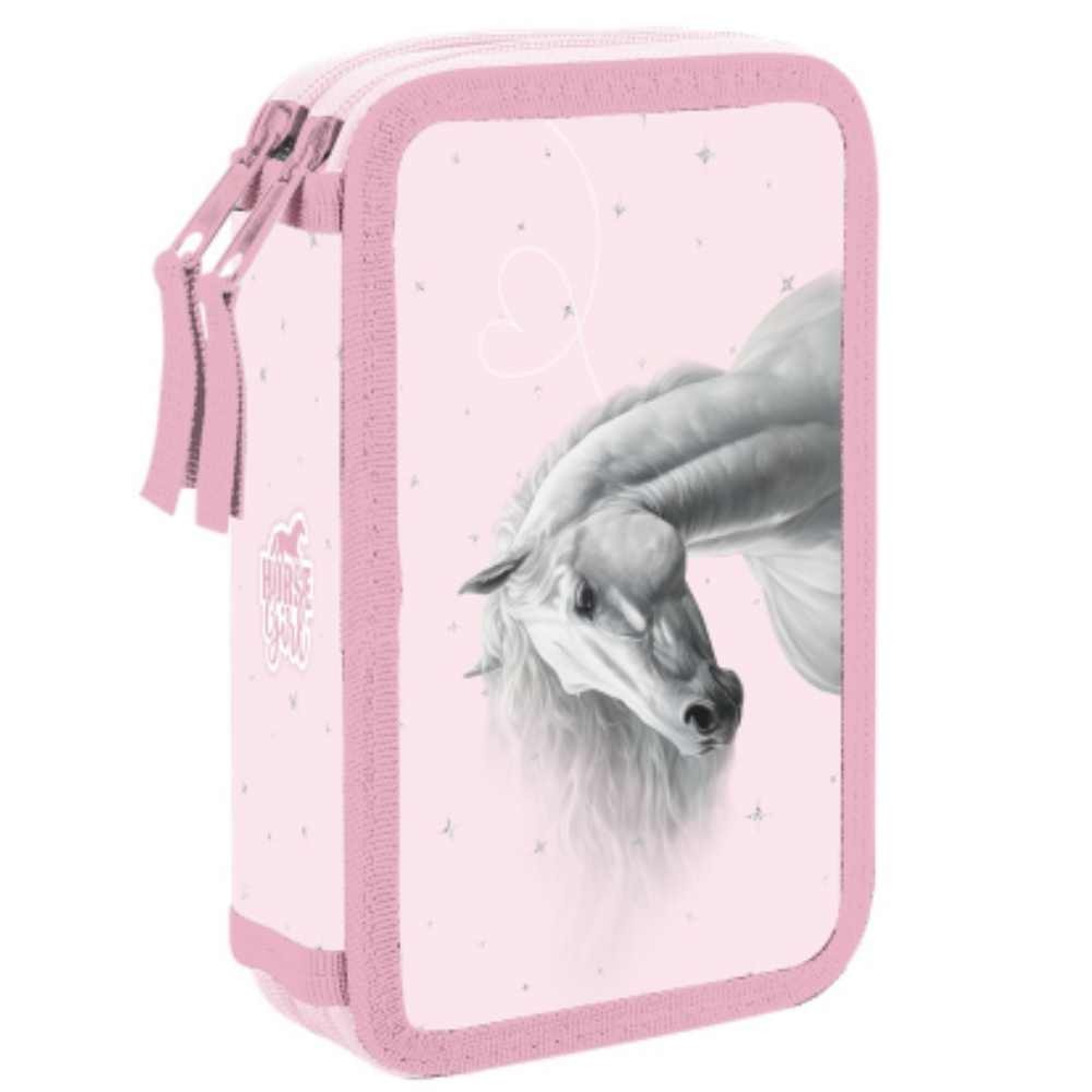 Školní penál s koněm OXYBAG Kůň Romantic bez náplně. Dvoupatrový penál obsahuje 25 gumových poutek pro uložení všech psacích potřeba a drobností potřebných k výuce. Penál má pevný zip s velkými taháčky pro snadnou manipulaci. Jedno patro je opatřeno průhlednou přihrádkou pro týdenní rozvrh.