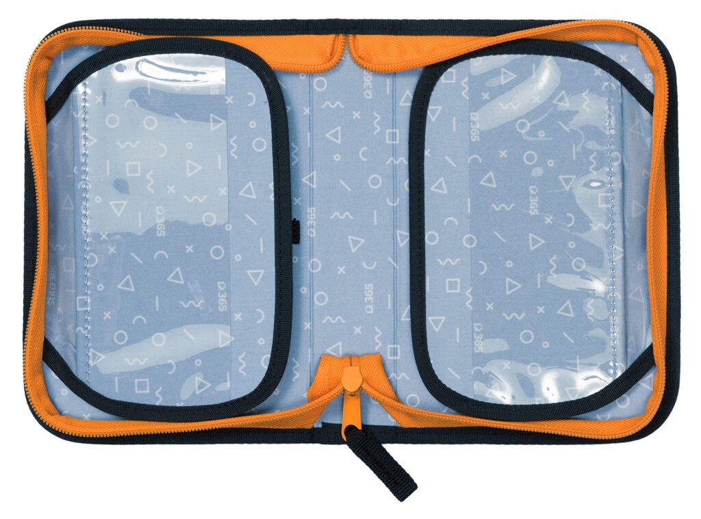 Penál do školy pro dívky i chlapce Stil Giraffe má velkou kapacitu k umístění psacích potřeb. Přesně 24 pevných gumiček různých velikostí slouží k pohodlnému uložení pastelek, psacího pera, tužek, pravítka, ořezávátka a gumy. Nově jsme zvětšili výšku hřbetu penálu, díky čemuž pojme ještě více psacích a jiných potřeb. Klopy mají na vnější straně průhlednou kapsičku na rozvrh či jiné malé dokumenty, na vnitřní straně je pak nová síťovaná kapsička pro uložení drobností. Sladěný design s aktovkou či batohem je samozřejmostí.