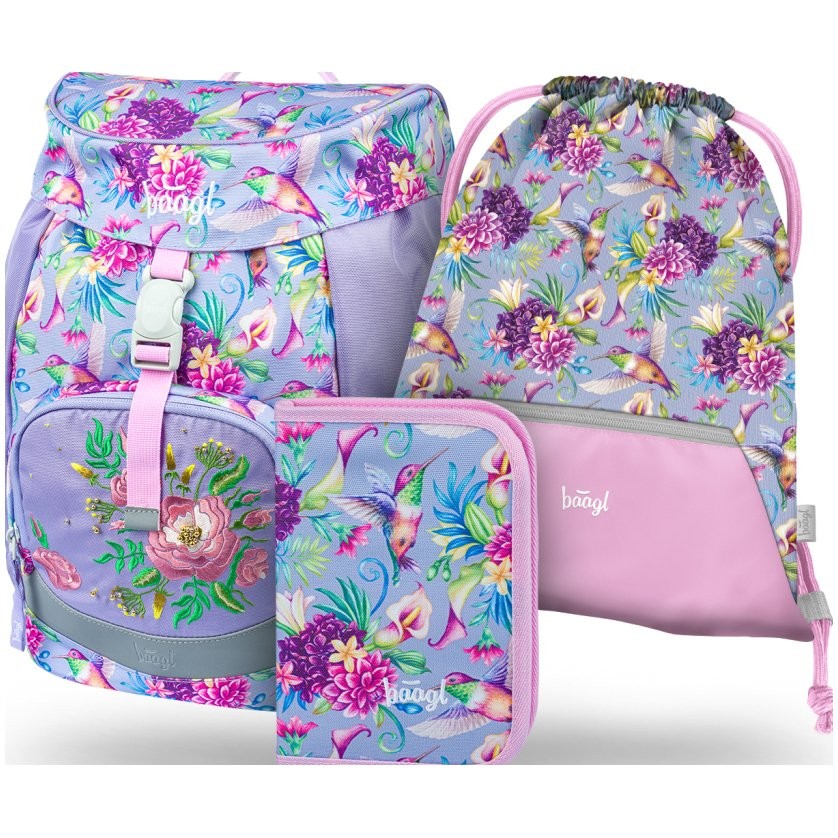 Školní taška Baagl Airy Kolibřík 3dílný SET