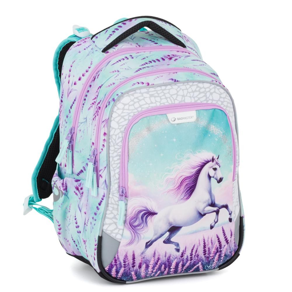 Školní taška s krásným koněm pro dívky a s tříkomorovým uspořádáním pro učebnice a sešity, ergonomicky tvarovaným zádovým systémem pro pohodlné nošení a reflexními prvky – ideální parťák pro školačky od první do třetí třídy. Taška do školy je velmi lehká – váží jenom 0,94 kg. Není příliš široký, aby zbytečně netížil při chůzi. Například mezi lavicemi nebo v úzké uličce autobusu.