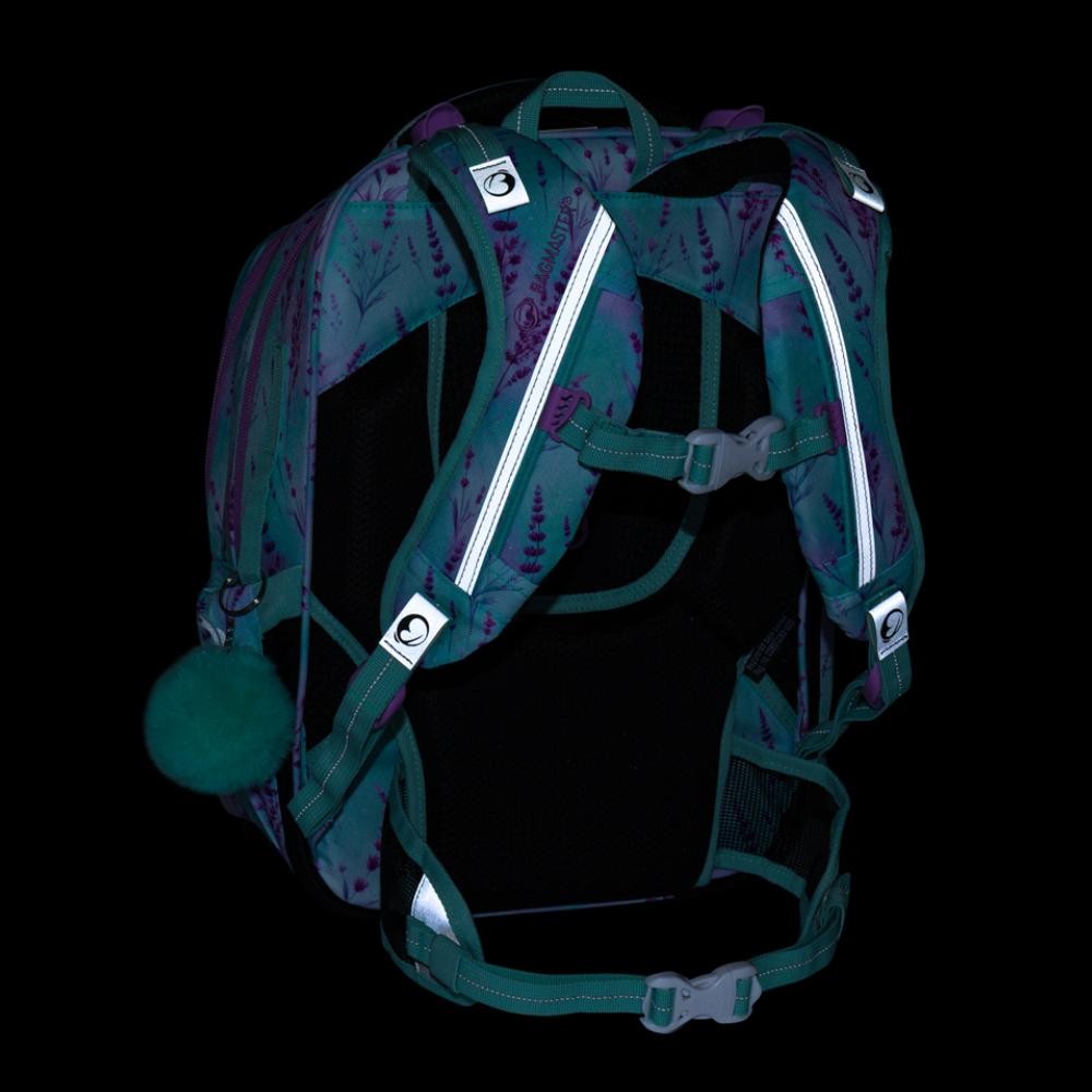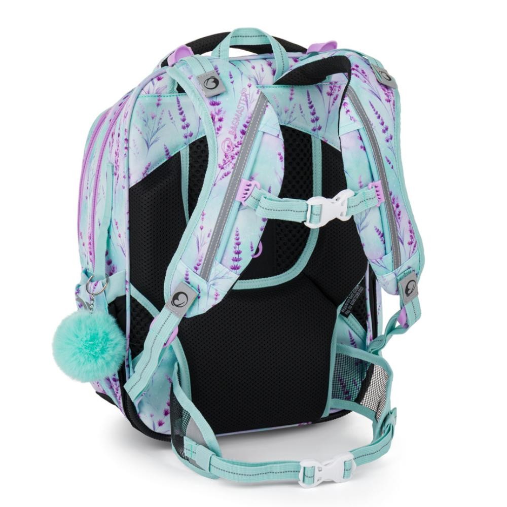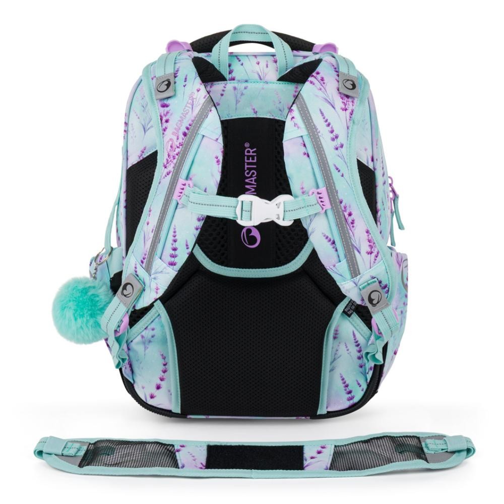 Ergonomicky tvarovaná záda a prodyšný bederní pás podporují správné držení těla. Flexibilní hrudní pás pomáhá stabilitě batohu na zádech. Ramenní popruhy díky němu nesjíždí z ramenou. Ramenní popruhy i zádový systém jsou měkce polstrované. Popruhy se nastavují pomocí horních a dolních plastových spon. Je třeba upravovat délku podle toho, jak školačka roste. Konce popruhů jsou magnetické. Aby neblincaly, jednoduše je magnetem připnete nad plastovou sponu. Součástí batohu je roztomilý přívěsek. 3 roky záruka.