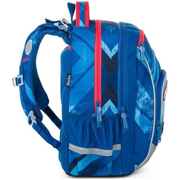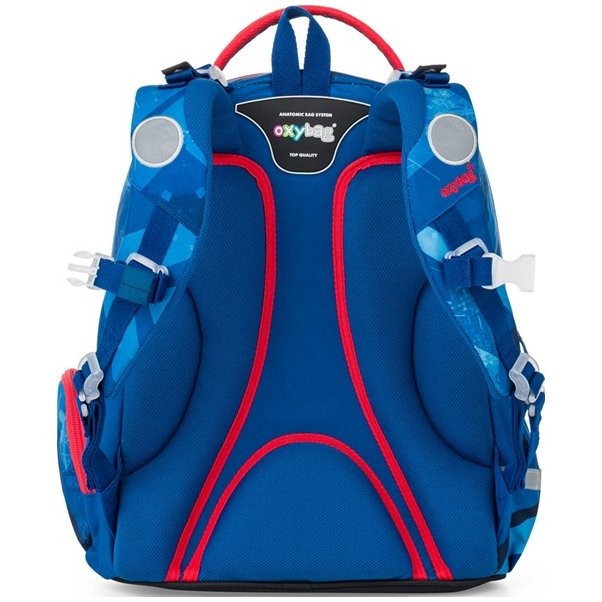 Chlapecká školní taška OXY GO zaujme moderním designem a promyšlenou funkčností. Batoh do školy je ideální pro děti od 1. do 3. třídy vysoké od 125 cm. Má anatomicky tvarovaná, prodyšná záda a nastavitelné ramenní popruhy pro pohodlné nošení. Školní batoh má přidané háčky umožňují uchycení dlouhých popruhů. Vnitřní kapsy nabízí dostatek místa na učebnice, sešity i další potřeby, pevné nepromokavé dno chrání obsah před ušpiněním a protečením. Boční kapsy, jedna na zip a jedna otevřená, slouží např. na láhev. Reflexní prvky zajišťují bezpečnost.