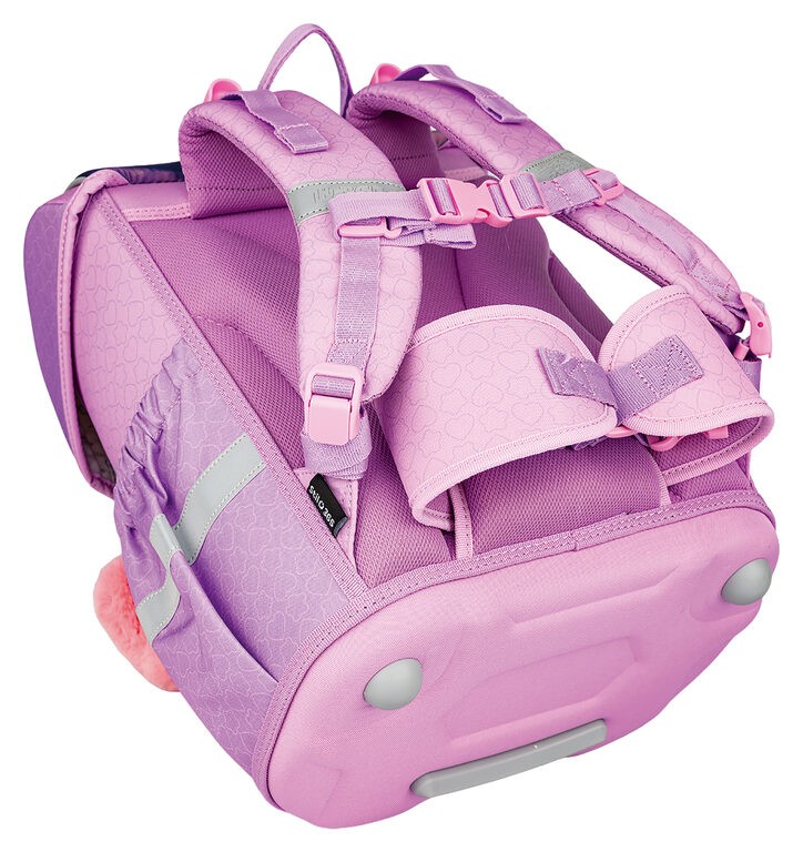 Anatomický zádový panel se přizpůsobí páteři dítěte a Air anatomic systém a prodyšné polstrování umožní cirkulaci vzduchu a také příjemné nošení. Vvýškově nastavitelný hrudní a nově i odnímatelný bederní pás s kvalitní přezkou zajistí pohodlné usazení aktovky na zádech dítěte i správné rozložení váhy.