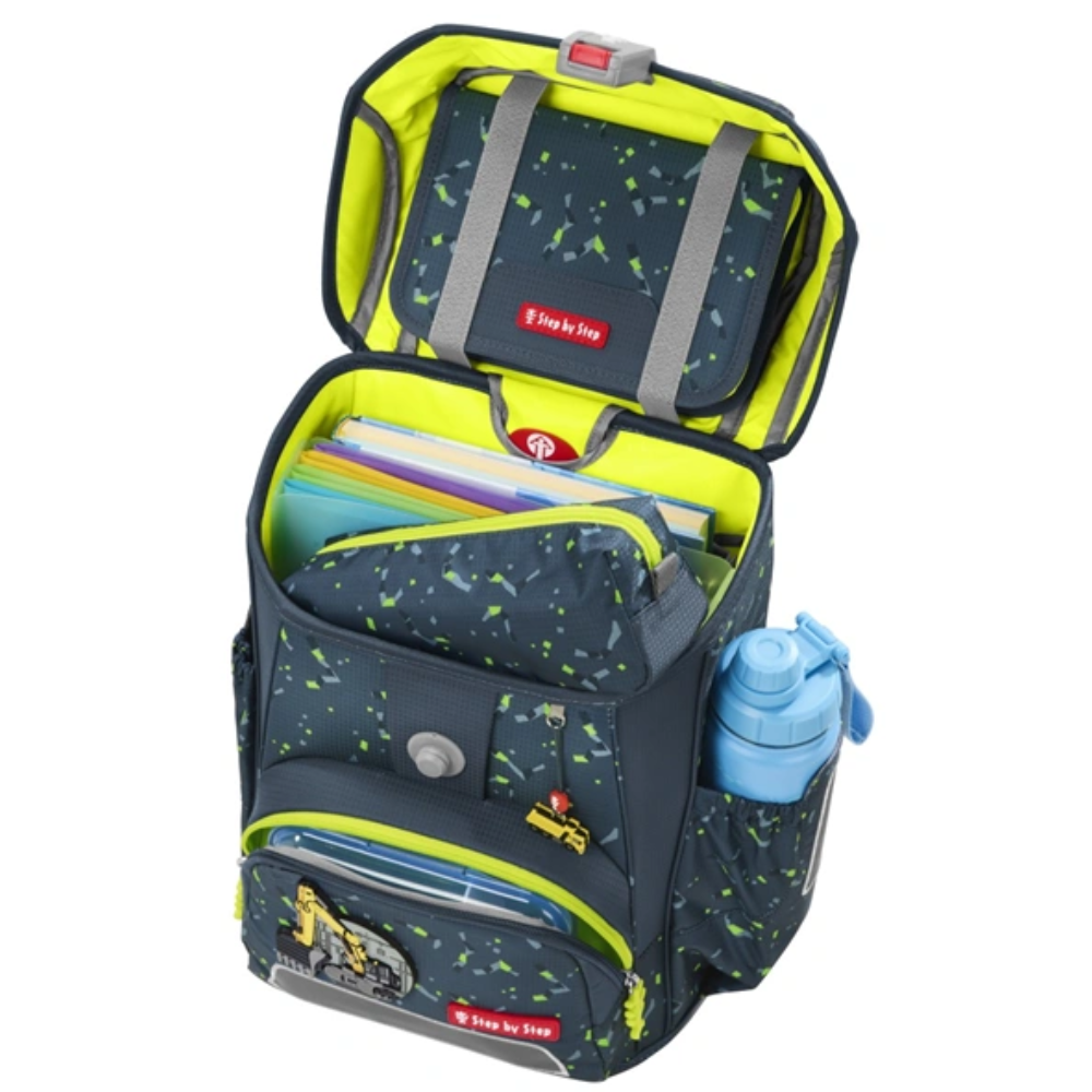 Chlapecká aktovka pro prvňáčka Step by Step CLOUD Bagger Rocco je vhodná pro drobné a standartně vysoké prvňáčky do které se vejde vše potřebné od pera až po sportovní potřeby. 5dílný školní set obsahuje: aktovku, plný penál, pouzdro, pytlík na cvičební úbor nebo přezůvky a vyměnitelné 3D obrázky Magic Mags