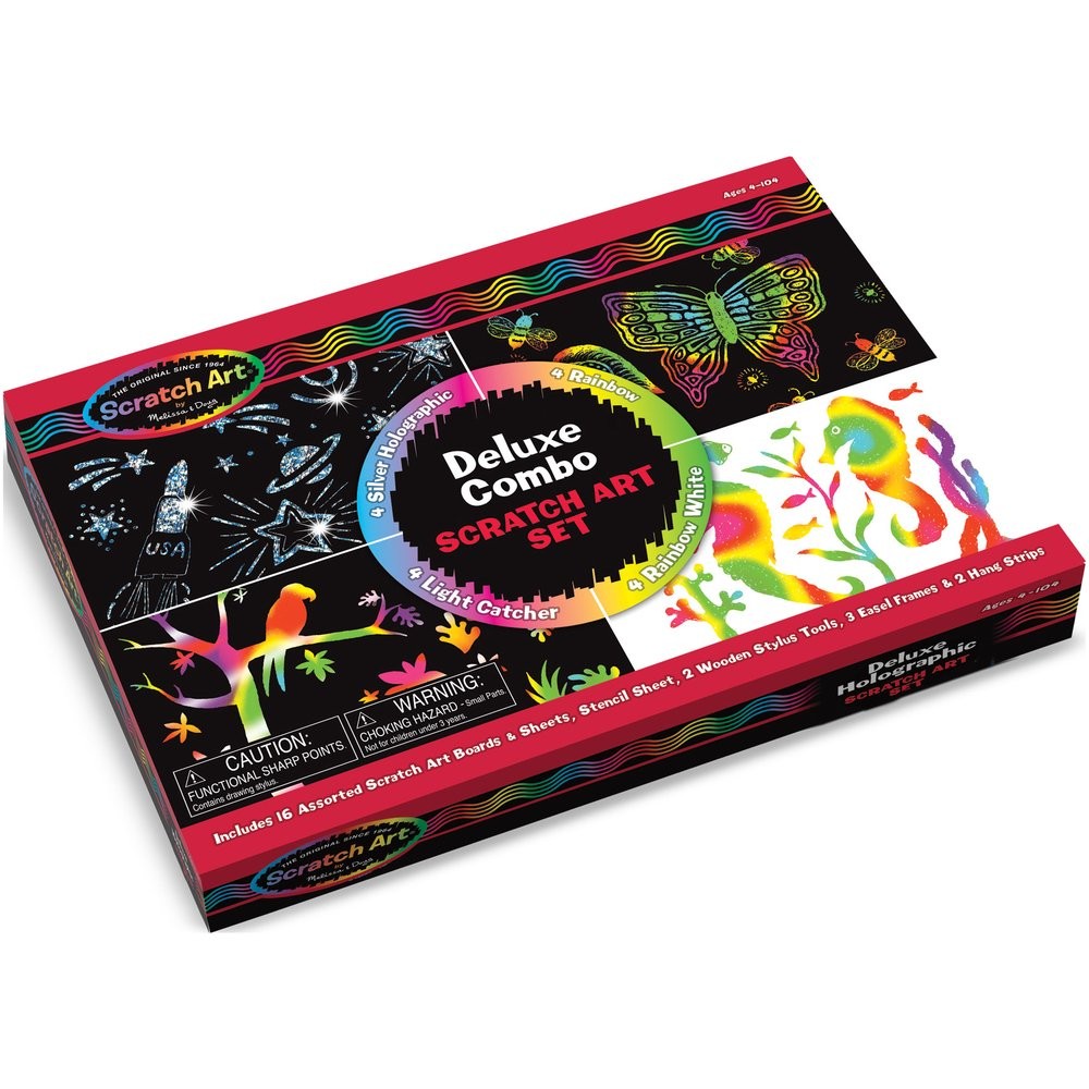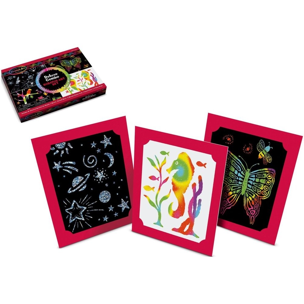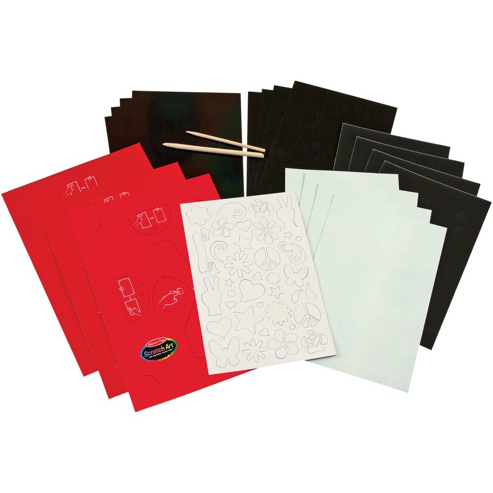Parádní vyškrabovací sada, která obsahuje škrabací obrázky i šablony. Tato sada obsahuje materiál pro 16 různých barevných podkladů pro vytvoření uměleckých výtvorů dětí. Je možné vyškrabávat podle vlastní fantazie nebo podle šablon v sadě.
