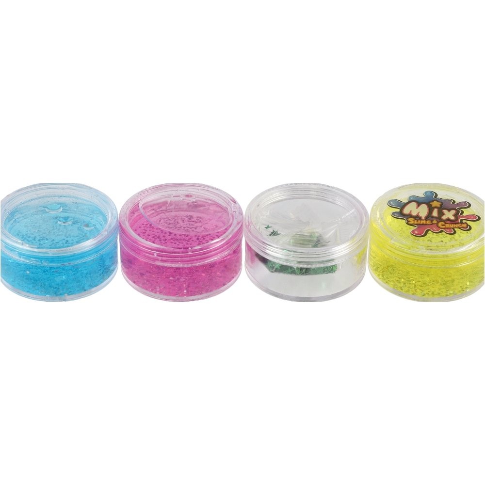 Balení obsahuje 3 kelímky s barevnou hmotou a kelímek s kuličkami, které můžete přidat do hmoty.