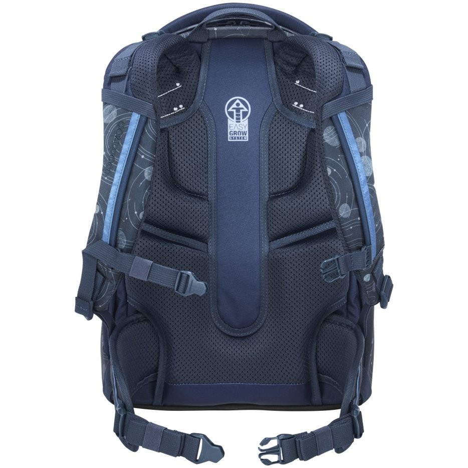 Školní batoh vhodný pro děti od 135 do 180 cm výšky nejen do školy, ale i pro sport a volný čas. Batoh má EASY GROW SYSTEM, roste s dítětem. Má plynulé nastavení ramenních popruhů pomocí otočného mechanismu uvnitř batohu přímo na zádech dítěte, polstrované ramenní popruhy ve tvaru S, dotahovací pásky pro těsné doléhání batohu k zádům, ergonomicky tvarovaná záda s měkkým prodyšným polstrováním a výškově nastavitelný hrudní popruh.