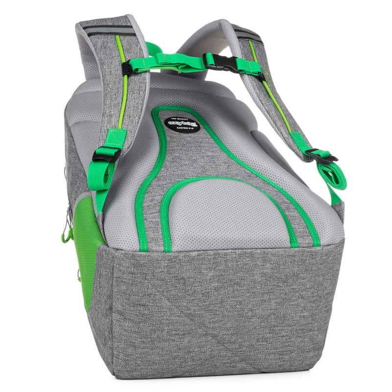 Dvoukomorový školní batoh v moderním barevném provedení vhodný pro 2. stupeň ZŠ a střední školu s velkou přední kapsou. V prostorné hlavní komoře najdete kapsu na notebook, v přední pak praktický organizér a zipovou kapsičku. Batoh má polstrovaná, prodyšná záda potažené síťovinou, široké a polstrované ramenní popruhy s hrudním páskem, který se dá výškově posunovat. Dvě boční kapsy jsou vhodné pro láhev s pitím nebo další nezbytnosti.