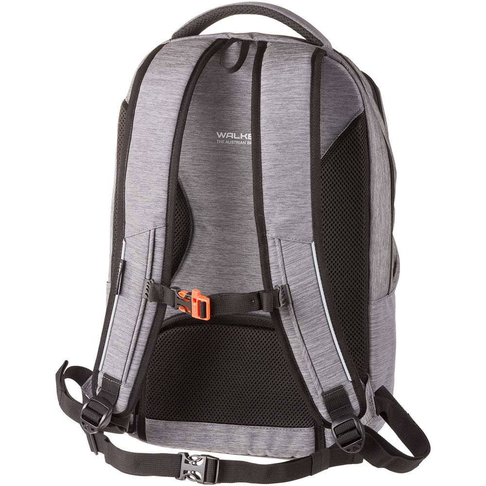 Zádová část má tvarované polstrování pro pohodlné nošení. Dolní bederní opěrka je řešena jako skrytá kapsa na zip s RFID (radiofrekvenční) ochranou. Úplně dole se nachází nastavitelný bederní pásek pro lepší stabilitu batohu na zádech studenta. Ramenní popruhy jsou polstrovány a na spojovacím pásku řemenů je umístěna píšťalka pro výstražný hvizd. V horní části zádového dílu je připevněno jednoduché poutka na zavěšení. Po obou stranách batohu jsou rozšiřitelné boční kapsy. Dno je vyztužené, textilní.