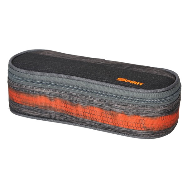 Praktický penál v oranžovo-šedé kombinaci je vhodný pro žáky 2. stupně ZŠ a studenty.