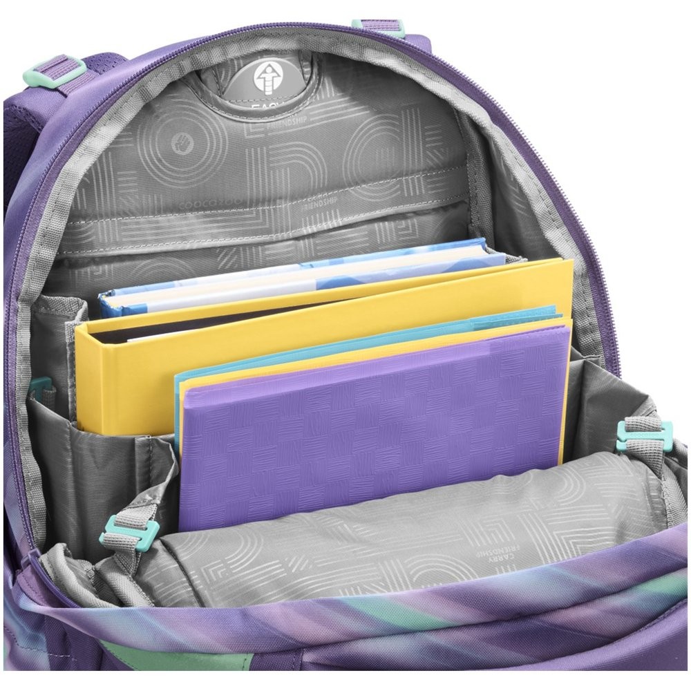 Školní batoh má též odnímatelné stahovací řemínky pro stažení obsahu více k zádům, odnímatelné upevňovací popruhy na přední straně batohu pro připevnění bundy, helmy nebo třeba skateboardu, odnímatelný bederní pás s funkcí Pull-Forward (utažení dopředu), dvě otevřené boční kapsy rostoucí směrem ven, polstrovaná rukojeť, poutko na zavěšení a tři kapsy pro všechny školní potřeby.