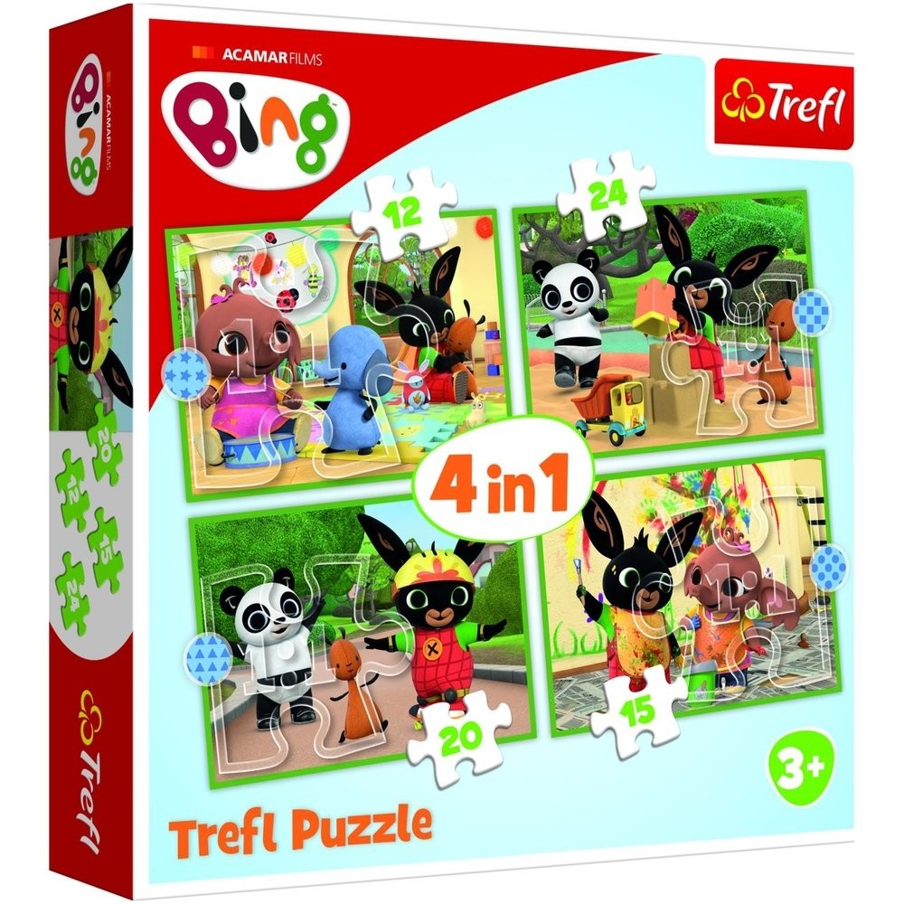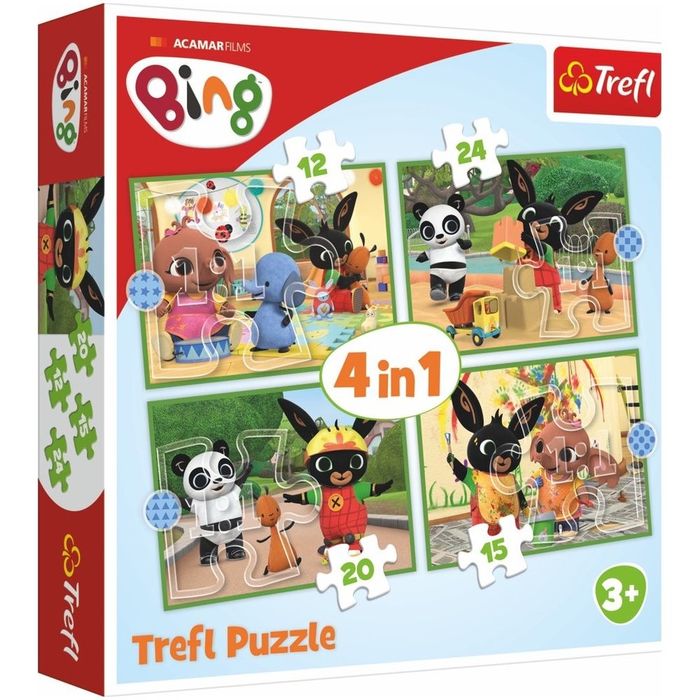 Puzzle s motivem oblíbeného dětského seriálu Bing. Čtyři samostatná puzzle Binga a jeho kamarádů s různým počtem dílků - 12, 24, 20 a 15 - postupně vedou ke zdokonalování dítěte při skládání a zvyšování obtížnosti.