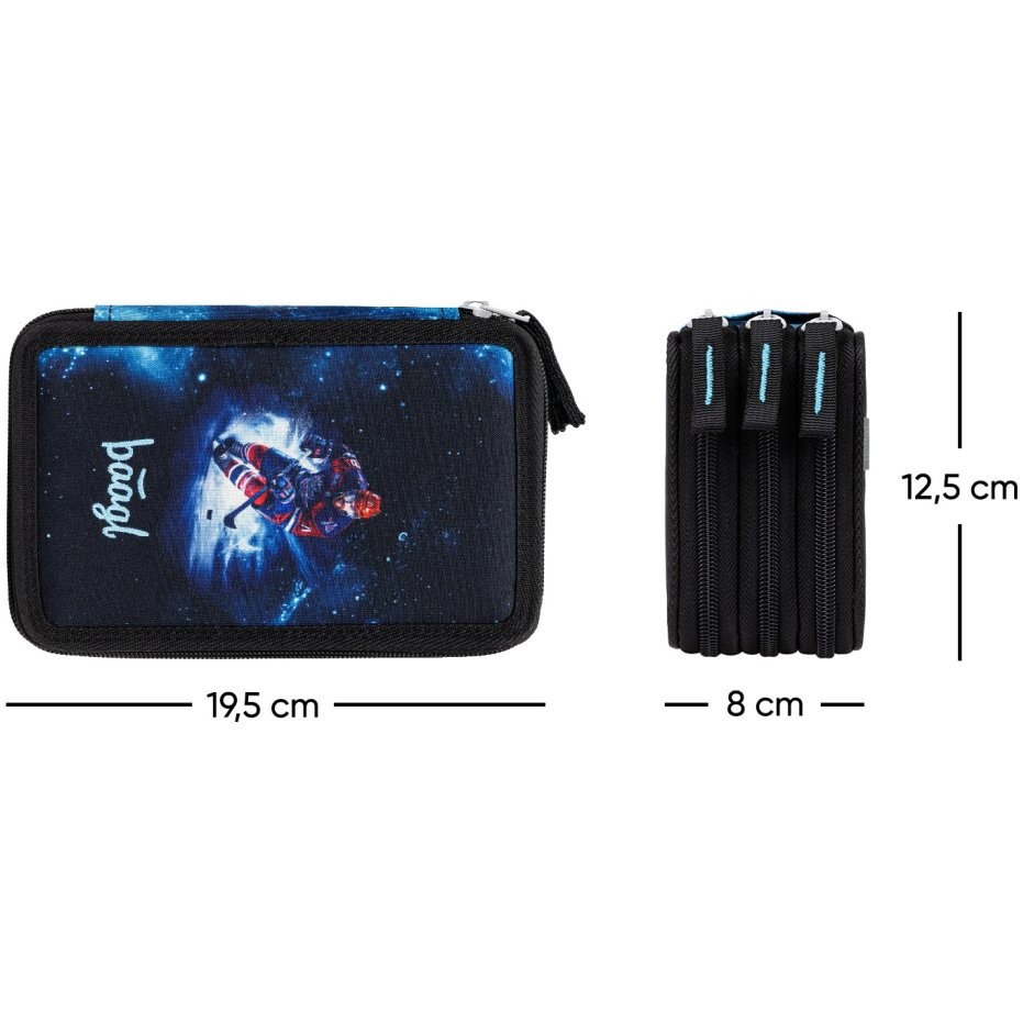 Extra prostorný třípatrový penál na všechny psací potřeby.