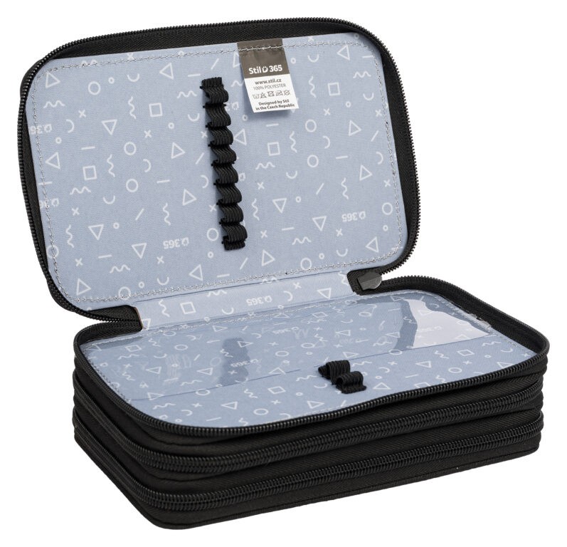 Školní penál Stil Paws pojme nejvíce psacích a školních potřeb. První patro obsahuje 8 gumiček na pastelky, 3 širší gumičky na ořezávátko i gumu a nově také síťovanou kapsičku s pružným lemem na uložení drobností. Ve druhém patře je umístěna průhledná kapsička na rozvrh a 10 pevných gumiček na psací potřeby různých velikostí. Třetí část penálu nabízí navíc ještě dalších 15 gumiček na tužky a 2 další širší gumičky pro různé potřeby. Penál je dokonale barevně sladěný design s aktovkou či batohem je samozřejmostí. Penál je bez náplně.
