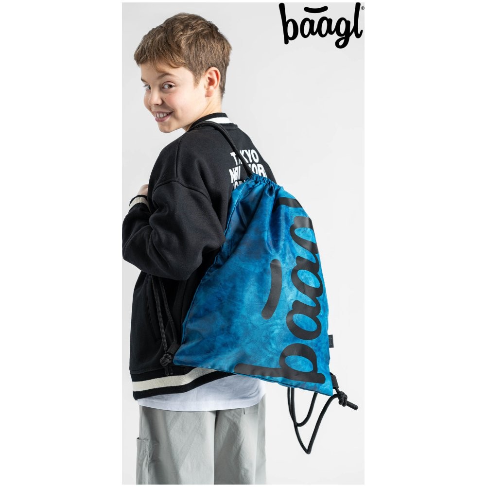 Stahovací vak na záda na obuv či jiné drobnosti značky Baagl vhodný pro volnočasové aktivity sportovně založených dětí. Je vyroben z pevného omyvatelného materiálu. Zdrhování pomocí pevných tkanic, které zároveň umožňují nošení na zádech.