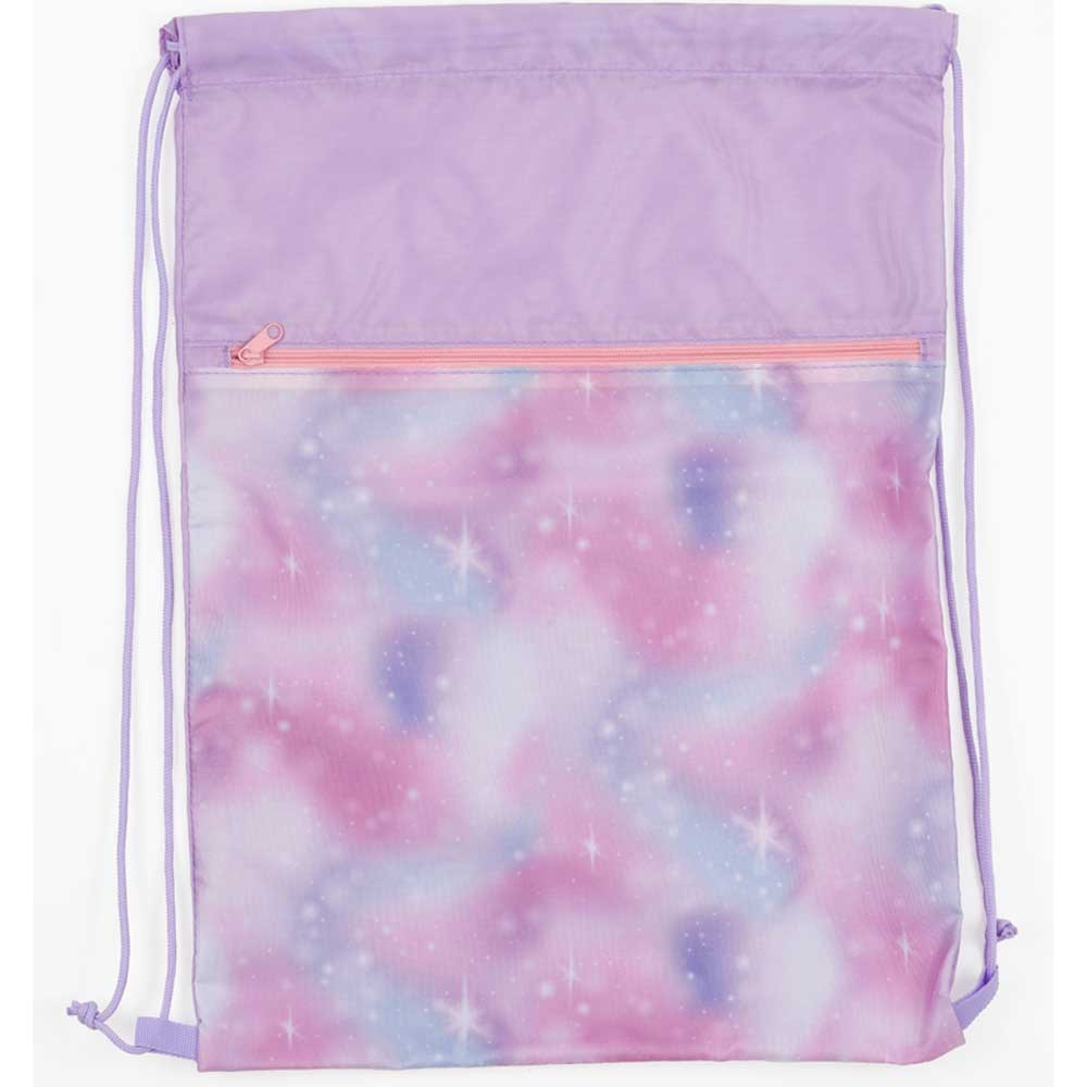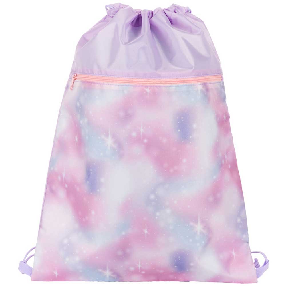 Sáček na cvičky je praktickým doplňkem školní aktovky pro uložení přezůvek či věcí na tělocvik. Vodoodpudivý pevný materiál udrží věci v suchu. Kapsa na zip oddělí boty od ostatního oblečení. Stahovací šňůrka spojená se spodní částí promění sáček v malý batůžek na záda.