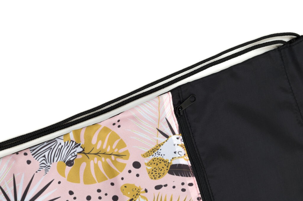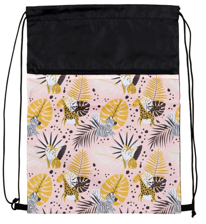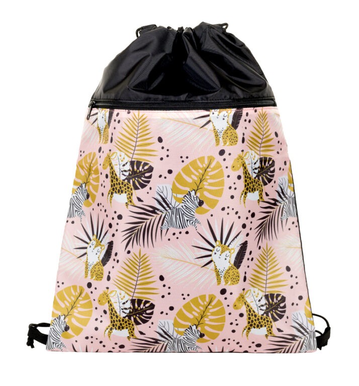 Sáček na cvičky je praktickým doplňkem školní aktovky pro uložení přezůvek či věcí na tělocvik. Vodoodpudivý pevný materiál udrží věci v suchu. Kapsa na zip oddělí boty od ostatního oblečení. Stahovací šňůrka spojená se spodní částí promění sáček v malý batůžek na záda.