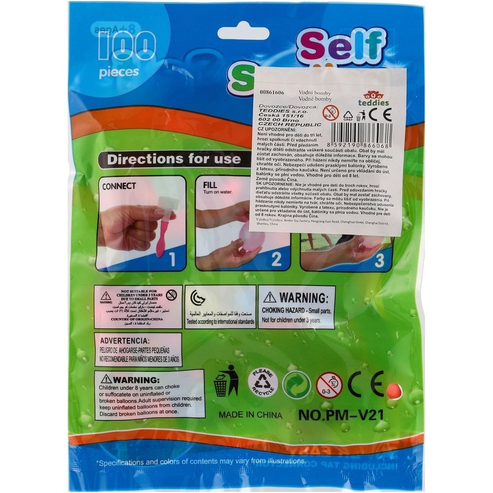 Vodní bomby jsou nafukovací balónky, které se napouští vodou a slouží jako munice v horkých dnech. Sada obsahuje 100 ks bomb s nástavcem na kohoutek.